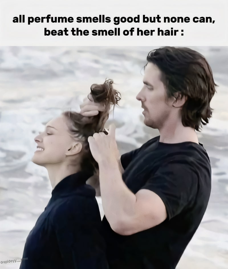 There’s something quietly magical about the way her hair smells—like soft shampoo, sunshine, and comfort. It’s not a perfume; it’s a feeling. When he leans in, it’s home. Even in silence, that scent lingers, calming, familiar. Funny how a little thing like that can hold so much love in it.