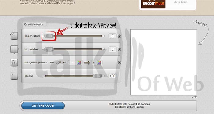 You just get a interface like this and a preview box at the right side of screen as shown in screenshot. Just set up things using the sliders mentioned and then click “Get Code” to have the handy code in hand.