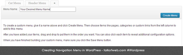 register_nav_menus( array( 'primary' => __( 'Primary Menu', 'talkofweb_wordpress_custom_menu' ), ) );