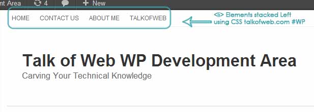 The links are not stacked to the left or you can say are not aligned left. Lets, make them float left using CSS. Look at that output code posted above, there you can see that every link is in the parent element <li> which is under <ul> and finally under a div with a class menu. Practically I am going to use the class “menu” to style this whole div. Let’s float these menu items to the left using CSS.
